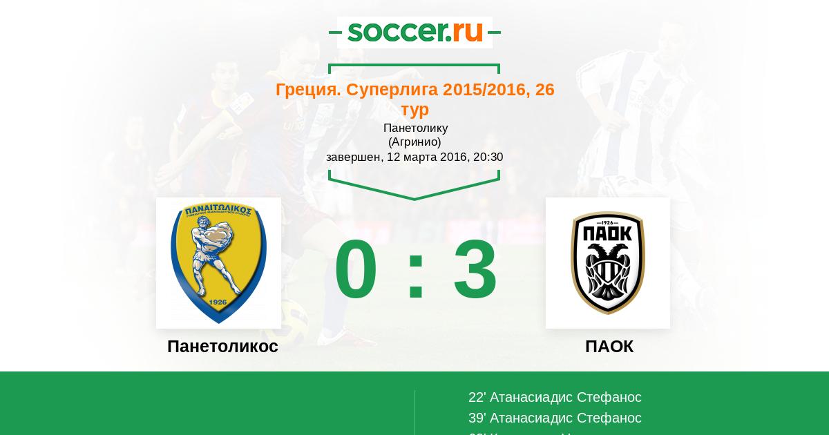 Панетоликос - ПАОК: обзор матча 12 марта 2016