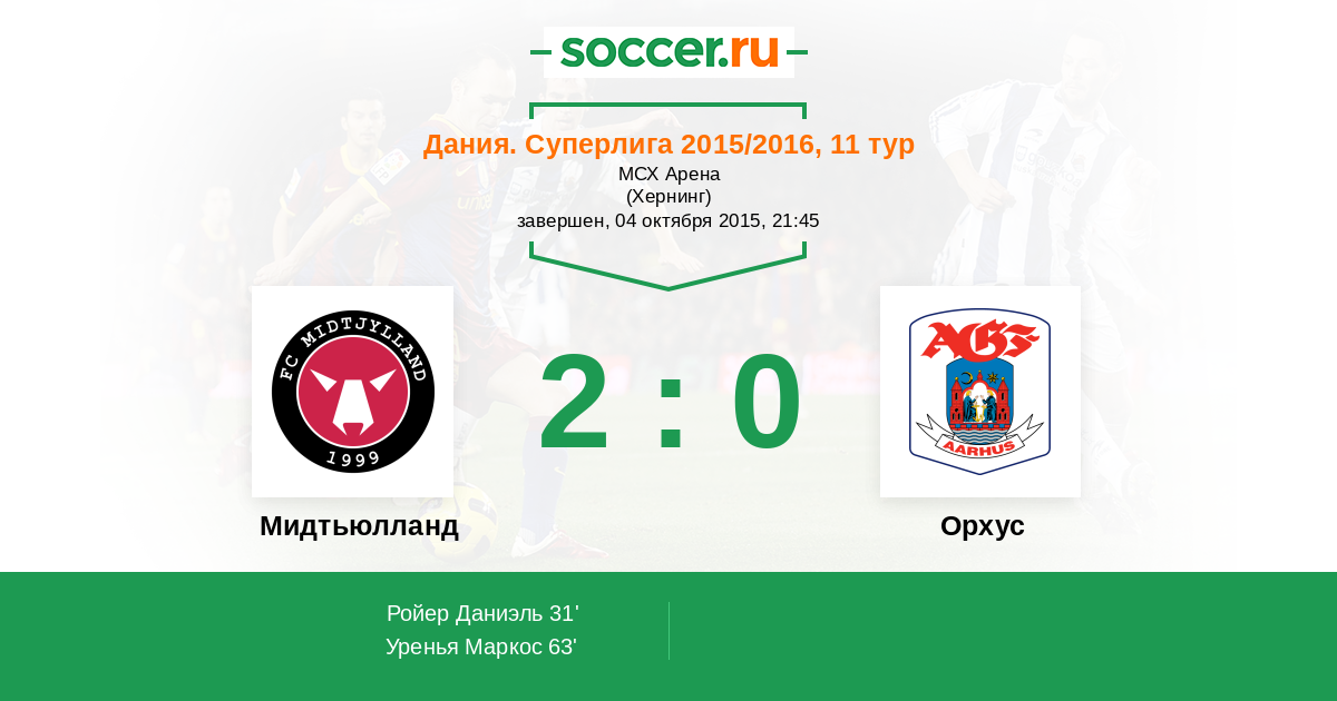 Мидтьюлланд - Орхус: обзор матча 4 октября 2015