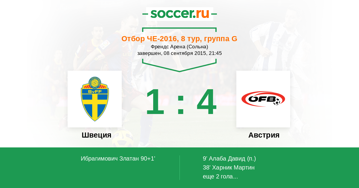 Швеция - Австрия: обзор матча 8 сентября 2015