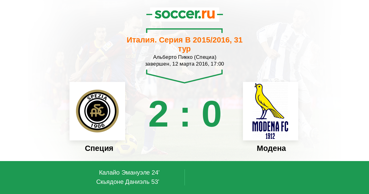 Специя - Модена: обзор матча 12 марта 2016