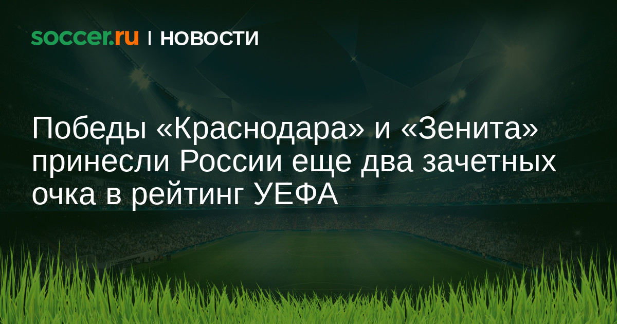 Победа «Краснодара» над «Люнгбю» и победа «Зенита» над израильским клубом «Бней-Иегуда» в Лиге Европы принесли России еще два зачетных очка в рейтинг УЕФА.