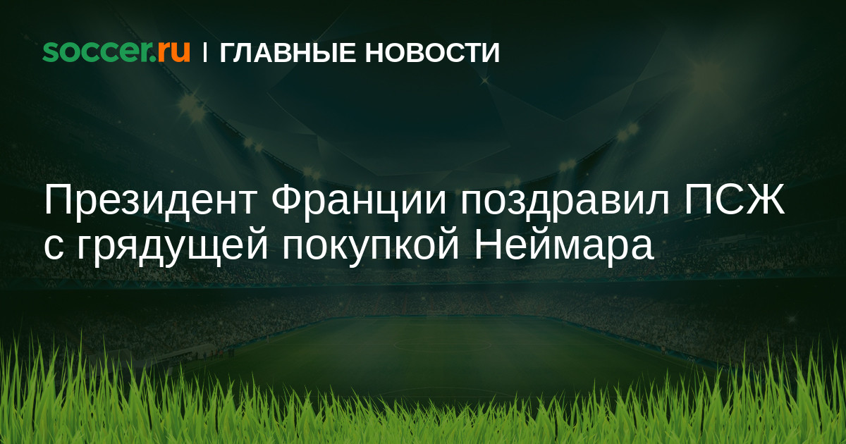 Президент Франции Эммануэль Макрон поздравил ПСЖ с грядущим трансфером нападающего «Барселоны» Неймара. Макрон сегодня выступал на благотворительном мероприятии в Париже, где повидался с президентом ПСЖ Насером Аль-Хелаифи.