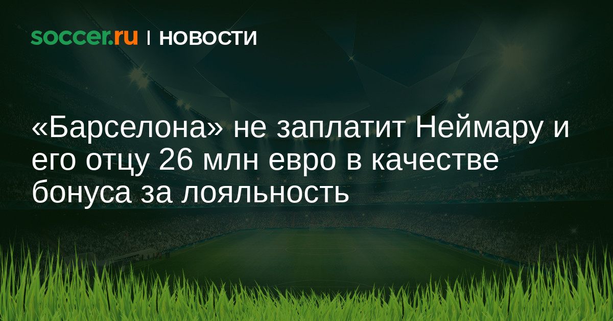 «Барселона» не заплатит Неймару и его отцу 26 млн евро в качестве бонуса за лояльность. Об этом сообщил пресс-секретарь клуба Хосеп Вивес. Ранее сообщалось, что в контракте бразильца с «Барселоной» есть пункт, согласно которому Неймар получит 26 миллионов евро, если до 31 июля 2017 года будет оставаться игроком каталонцев.