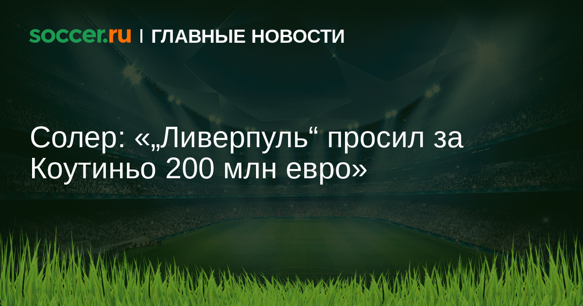 Исполнительный директор «Барселоны» Альберт Солер сообщил, что «Ливерпуль» хотел за своего полузащитника Филиппе Коутиньо 200 млн евро.