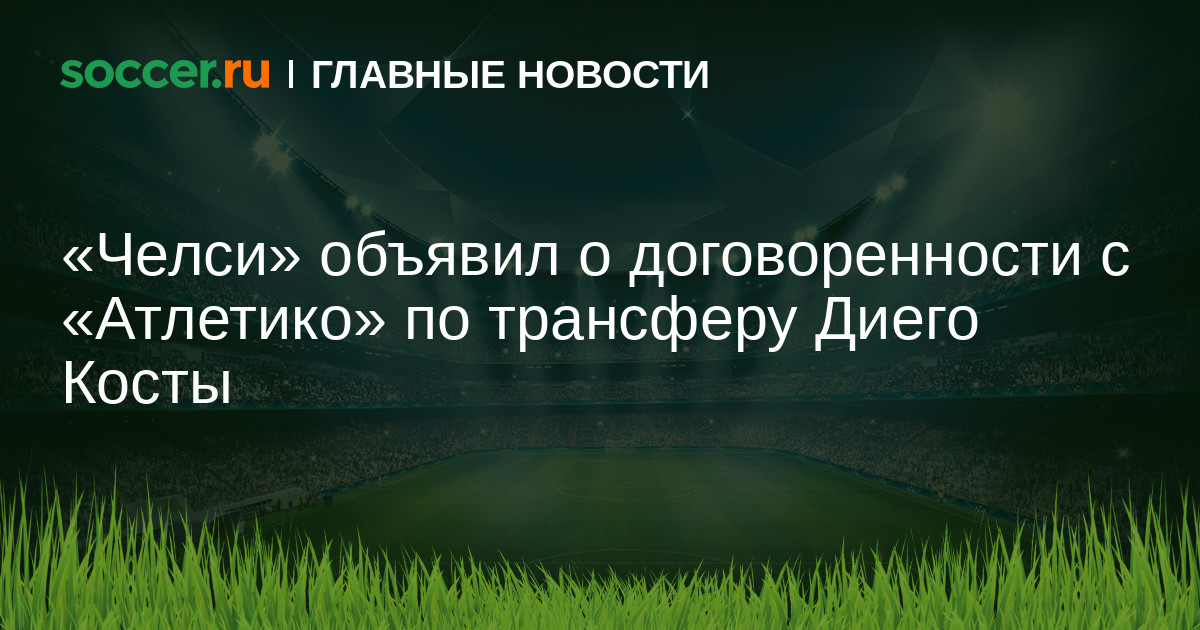«Челси» объявил, что договорился с «Атлетико» о переходе нападающего лондонцев Диего Косты под знамена «матрасников». Трансфер будет завершен, когда Коста согласует условия личного контракта и пройдет медосмотр. По неофициальной информации, сумма сделки составит 55 млн евро плюс 10 млн бонусами.