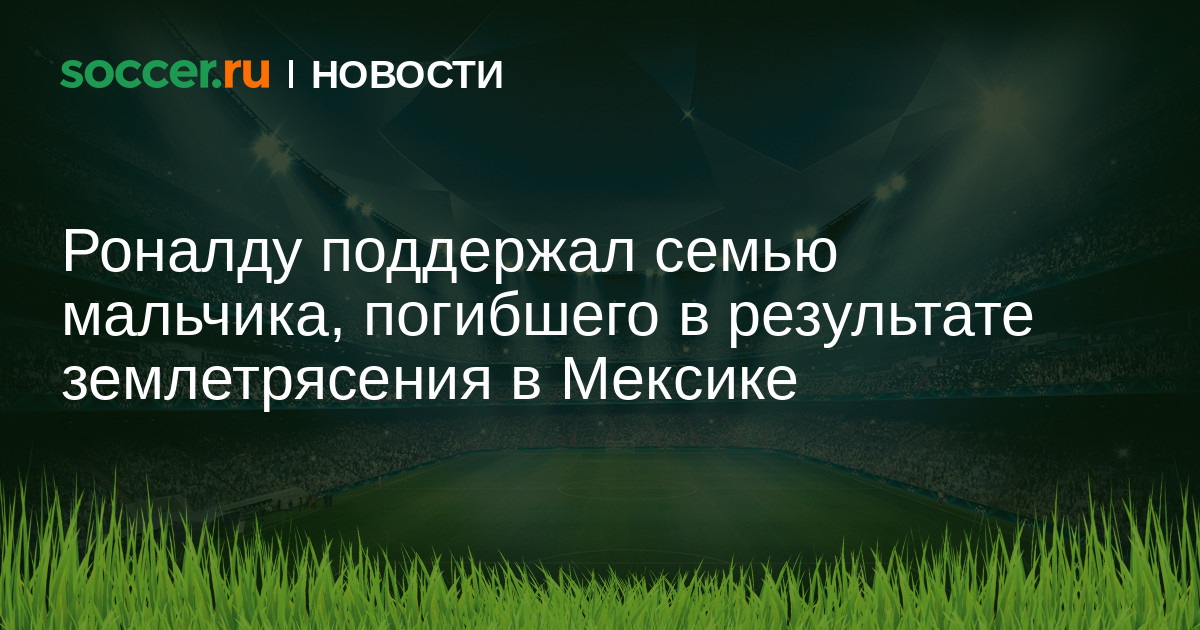 Нападающий «Реала» Криштиану Роналду поддержал семью погибшего 6-летнего мальчика Сантьяго, жизнь которого оборвалась в результате землетрясения в Мексике. Ранее тетя ребенка обратилась к Роналду в соцсетях с благодарностью за то, что он является примером для многих ребят.