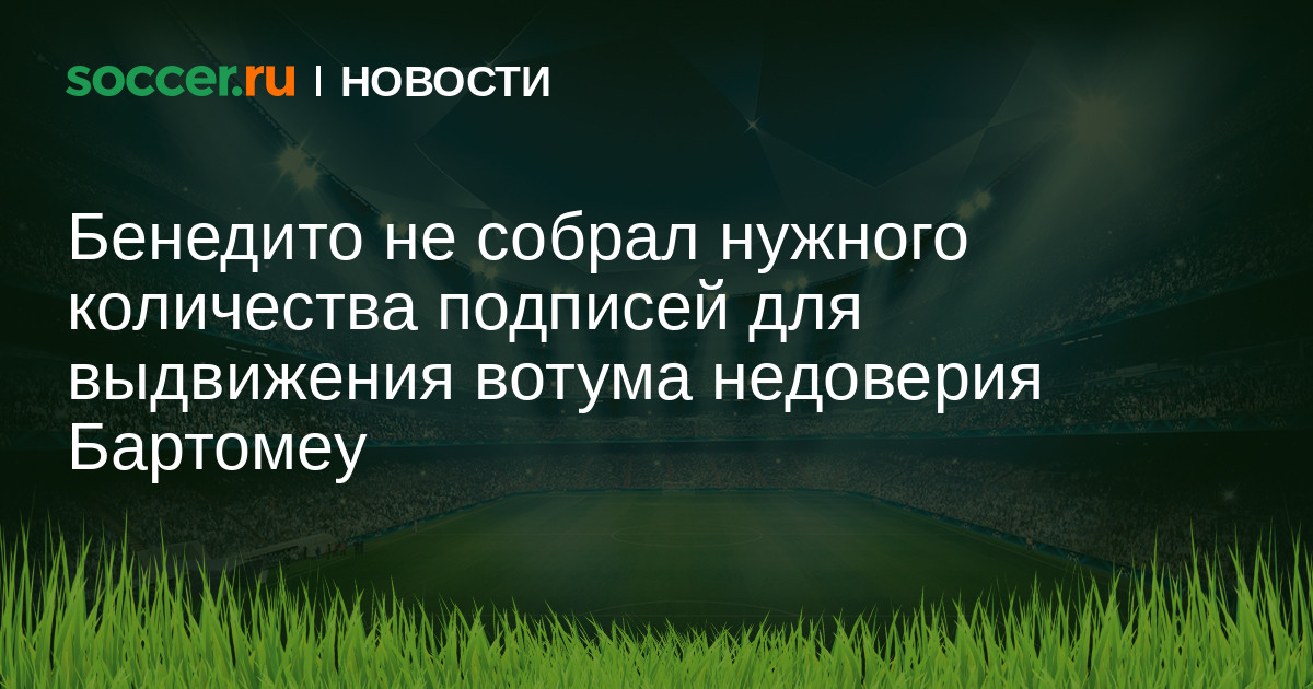 Напомним, что в сентябре экс-кандидат в президенты «сине-гранатовых» Агусти Бенедито начал сбор подписей для того, чтобы выдвинуть Бартомеу и нынешнему руководству каталонского клуба вотум недоверия. Чтобы выдвинуть вотум недоверия, необходимо было собрать 16570 подписей, однако было собрано лишь 12504.