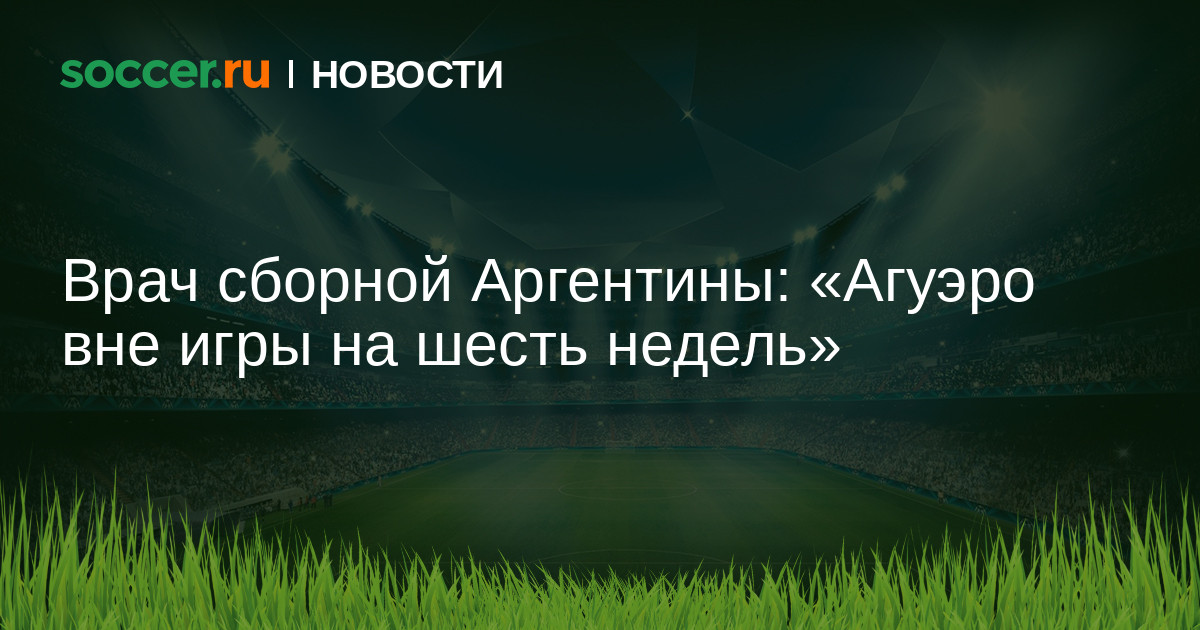 Врач сборной Аргентины Донато Виллани заявил, что нападающий «альбиселесте» и «Манчестер Сити» Серхио Агуэро пропустит из-за перелома ребра полтора месяца, а не 4 недели, как сообщалось ранее: