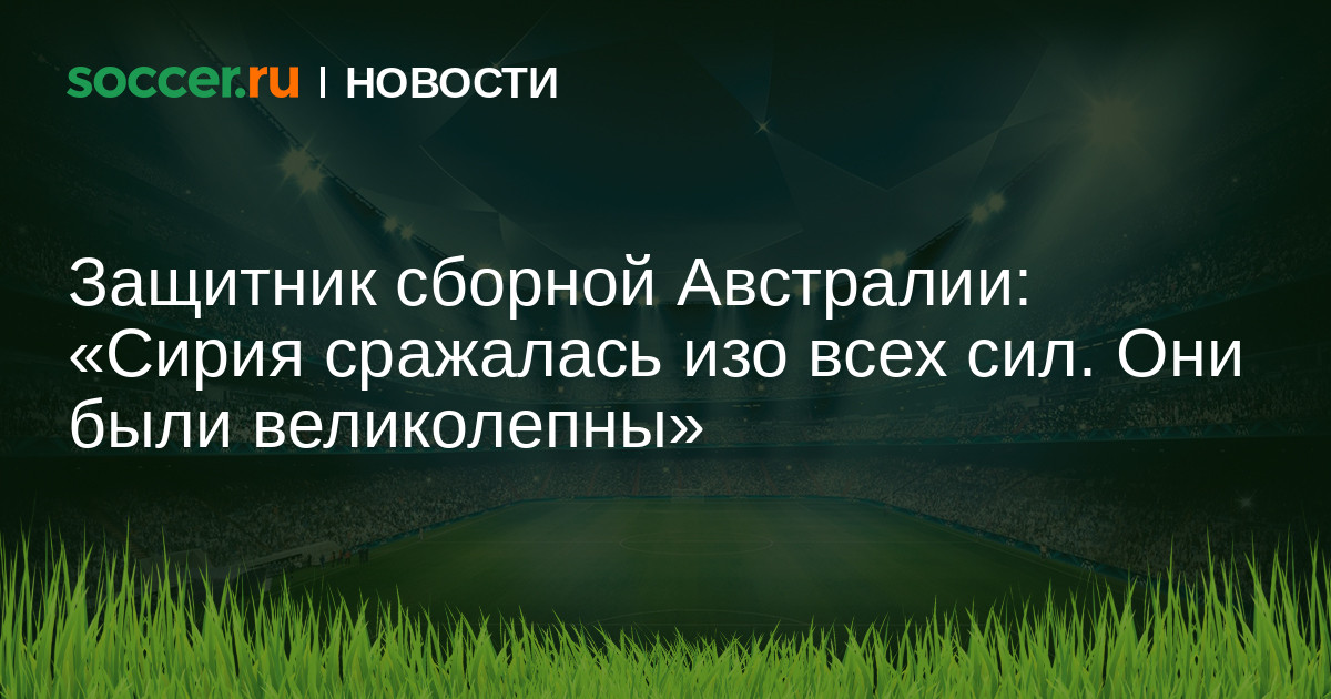 Защитник сборной Австралии Марк Миллиган после победы над сирийцами в ответном матче плей-офф азиатского отбора ЧМ-2018 отдал должное сопернику, который сражался до самого финального свистка:
