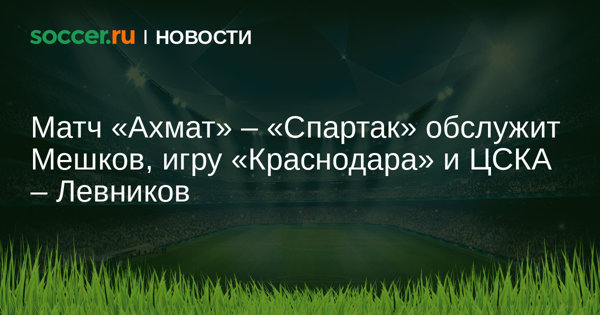 Стали известны судьи и инспекторы, которые обслужат матчи 13-го тура чемпионата России. Встречу «Ахмат» — «Спартак» рассудит Виталий Мешков, который в конце прошлого сезона был отстранен от работы на матчах российской Премьер-Лиги из-за допущенных ошибок в игре между «Крыльями Советов» и «Амкаром» (2:2).