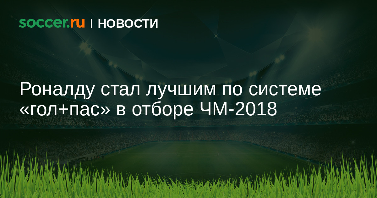 Нападающий сборной Португалии Криштиану Роналду стал лучшим по системе «гол+пас» в отборочном турнире ЧМ-2018 в Европе. На счету Роналду 15 забитых голов и три голевые передачи в девяти матчах. Ранее сообщалось о том, что нападающий сборной Польши Роберт Левандовски стал лучшим бомбардиром отборочного турнира ЧМ-2018 в Европе.