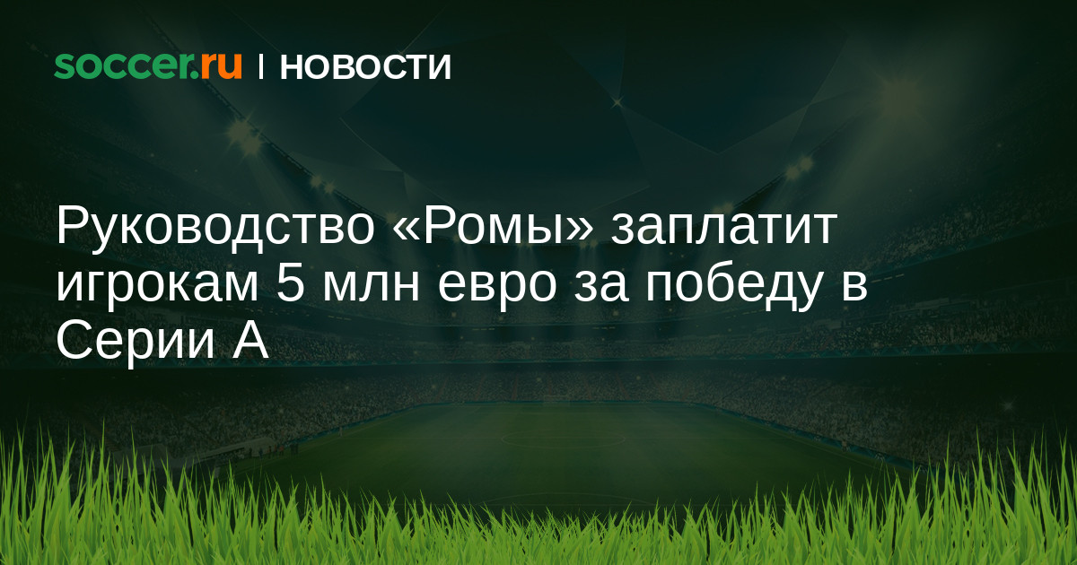 Руководство «Ромы» установило солидный бонус для игроков команды за победу в Серии А. По данным Corriere dello Sport, в случае завоевания Скудетто футболистам «джалоросси» будет выделено всего 5 млн евро. Это означает, что каждый игрок первой команды римлян получит примерно по 200 тысяч евро.