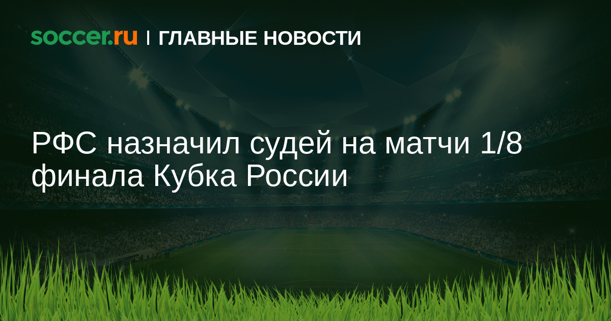 Российский футбольный союз объявил судейский состав и инспекторов, которые будут работать в матчах 1/8 финала Кубка России. Все встречи состоятся 25 октября.