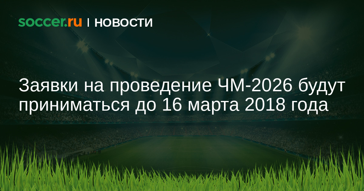 Член совета ФИФА, гендиректор оргкомитета «Россия-2018» Алексей Сорокин сообщил, что организация будет принимать заявки на проведение чемпионата мира 2026 года до 16 марта 2018 года.
