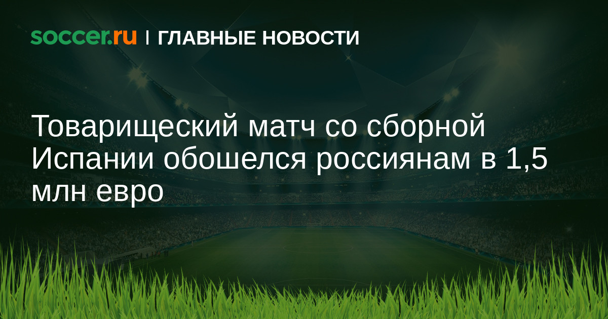 14 ноября сборная России проведет товарищеский поединок с испанцами на стадионе «Крестовский». По информации источника, организация встречи обошлась россиянам в полтора миллиона евро. Все расходы за приезд «Красной фурии» взяла на себя компания «Телеспорт». На встречи с Коста-Рикой и Бельгией потратить довелось в 5 раз меньше.