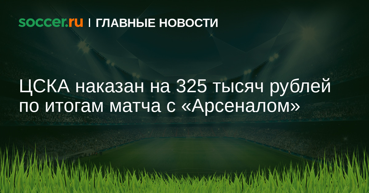 Глава КДК РФС Артур Григорьянц сообщил, что ЦСКА оштрафован на 325 тысяч рублей из-за поведения болельщиков в матче 15-го тура РФПЛ с тульским «Арсеналом» (0:1). В то же время туляки заплатят 100 тысяч.
