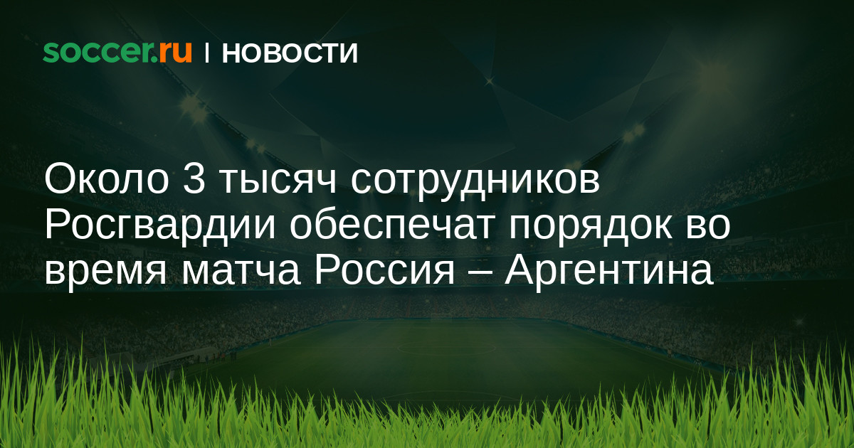 Около трех тысяч сотрудников Росгвардии обеспечат общественный порядок на товарищеском матче между сборными России и Аргентины. Встреча, напомним, состоится 11 ноября на стадионе «Лужники». Начало игры — в 16:00 по московскому времени.