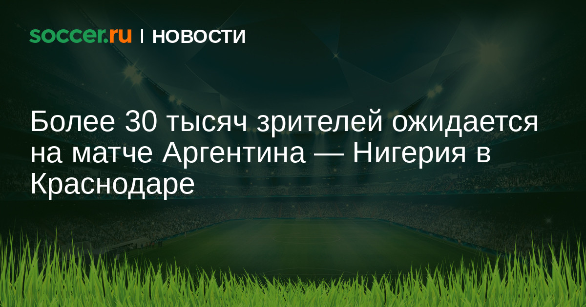 Более 30 тысяч человек ожидается на товарищеском матче между сборными Аргентины и Нигерии. Встреча, напомним, состоится в Краснодаре 14 ноября.