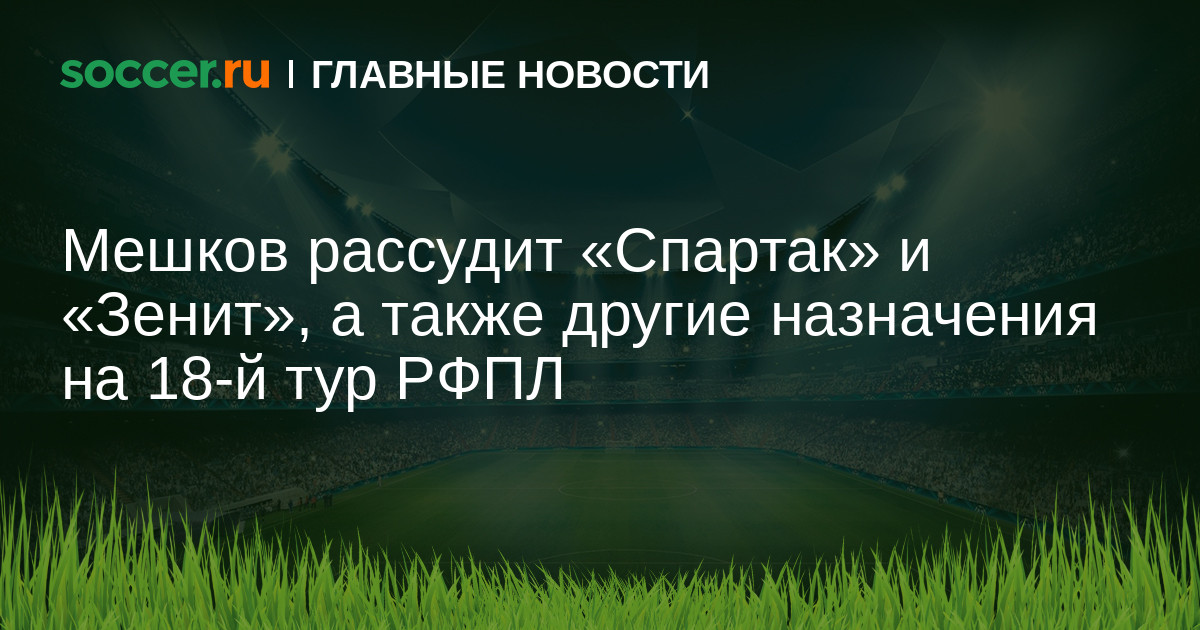 Пресс-служба Российского футбольного союза сообщила о судейских назначениях на матчи 18-го тура РФПЛ.