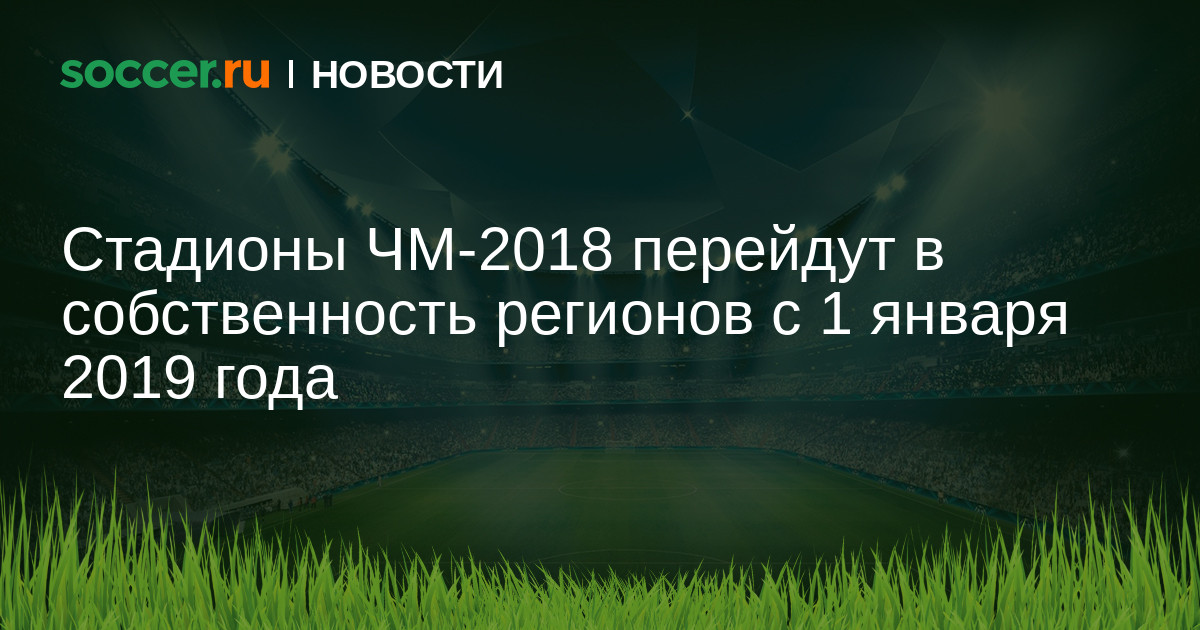 Президент РФС Виталий Мутко заявил, что стадионы, которые примут матчи чемпионата мира 2018 года, с 1 января 2019 года перейдут в собственность регионов России.