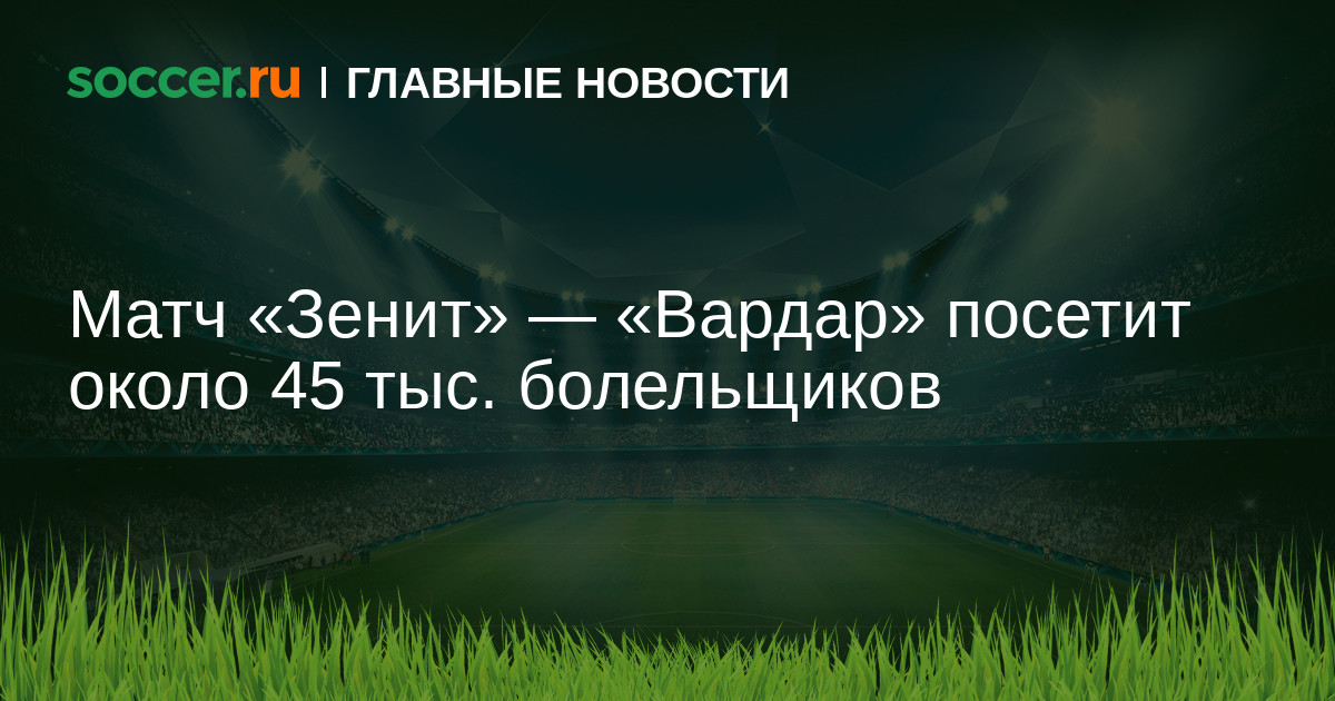 Как сообщает пресс-служба «Зенита», на сегодняшнем матче Лиги Европы против «Вардара» ожидается около 45 тысяч зрителей.