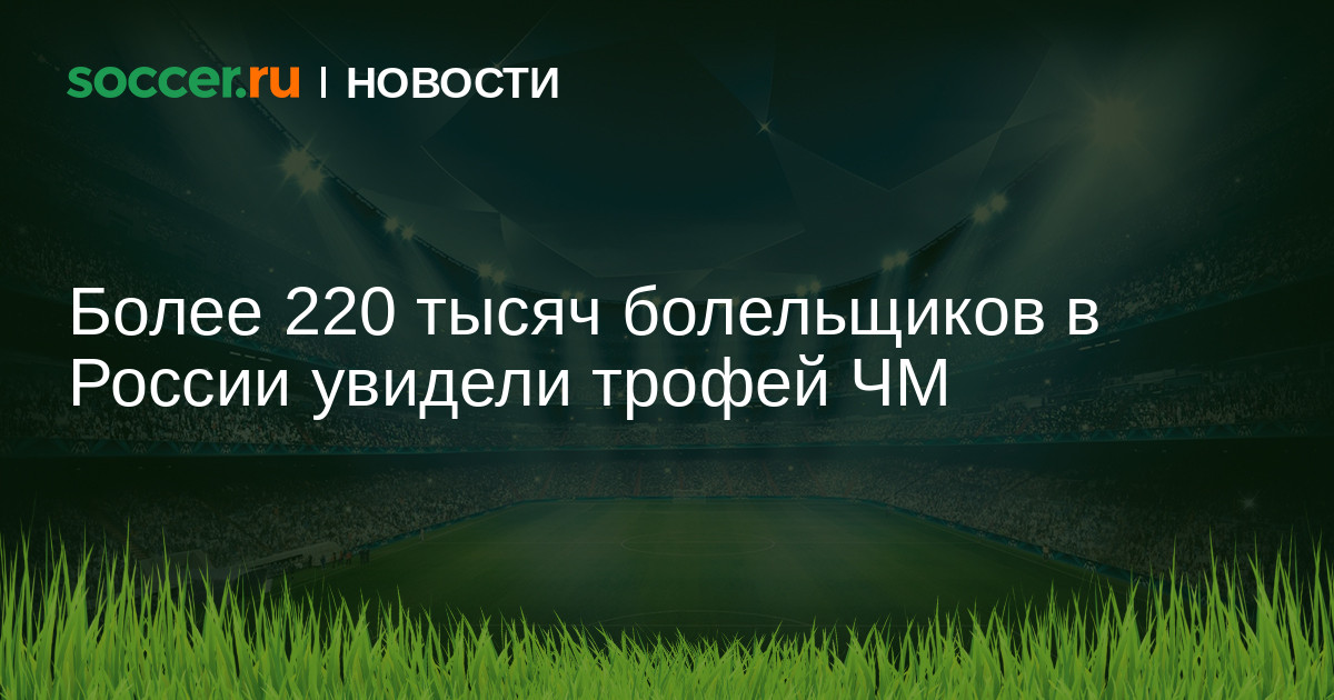 Завершен первый этап тура кубка ЧМ-2018. За 78 дней трофей посетил 16 городов России, преодолел более 16 тысяч километров и сменил 6 часовых поясов. В общей сложности трофей увидели 220 тысяч болельщиков.