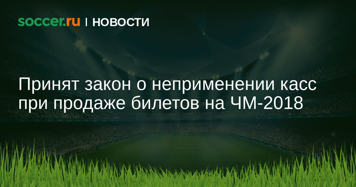 Президент России Владимир Путин, который через несколько дней посетит жеребьевку ЧМ-2018, подписал закон, предусматривающий право не применять контрольно-кассовую технику (ККТ) при продаже билетов на мундиаль. Также закон предусматривает продление до 1 июля 2019 года права не применять ККТ отдельным видам юридических лиц и индивидуальных предпринимателей.