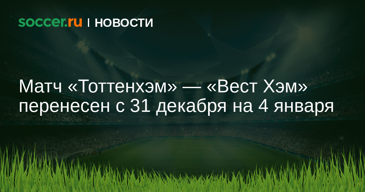Матч 21-го тура чемпионата Англии между лондонскими «Тоттенхэмом» и «Вест Хэмом» перенесен с 31 декабря на 4 января. Время начала игры — 23:00 по московскому времени.