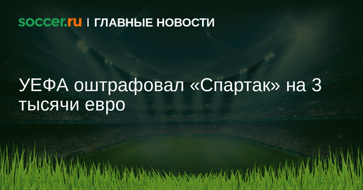 «Спартак» оштрафован дисциплинарным комитетом УЕФА на три 3 тысяч евро по итогам домашнего матча 5-го тура группового этапа Лиги чемпионов со словенским «Марибором».