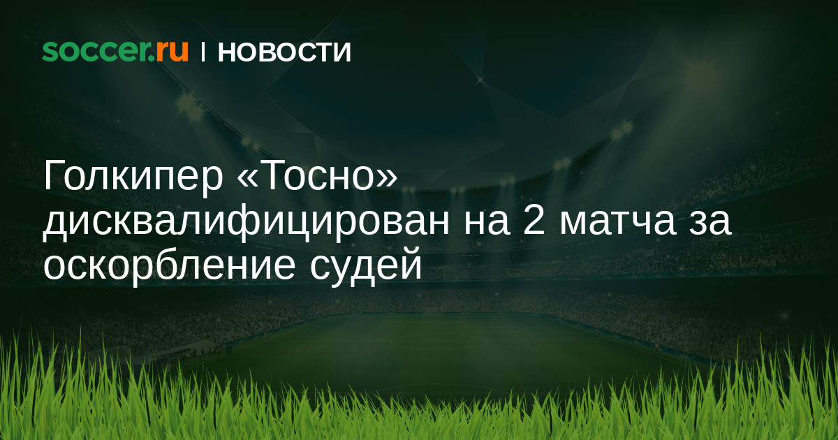 Глава КДК Артур Григорьянц заявил, что голкипер «Тосно» Давид Юрченко дисквалифицирован на два матча за оскорбление судей. Инцидент произошел в матче 20-го тура РФПЛ «Тосно» — «Локомотив».