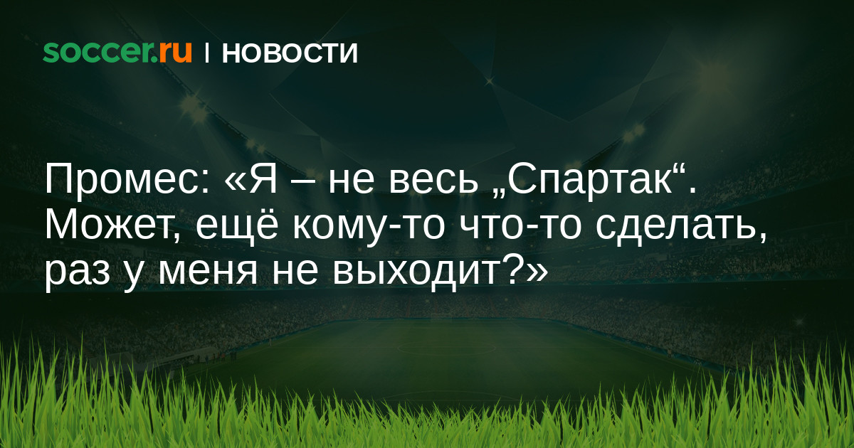 Что касается двух ничейных игр с „Марибором“, это было ужасно. Та же хрень, о которой говорил. В этих матчах вся команда выглядела плохо. Почему вы считаете, что не победили только из-за того, что я сыграл плохо? Я – весь „Спартак“, что ли? Может, ещё кому-то что-то сделать, если у меня не получается? Скажем, отдать мне голевой пас. Побеждаю не я, а команда. И проигрываем тоже все вместе. Никогда не снимаю с себя вины, но всегда показываю на поле что-то стоящее. Думайте, прежде чем писать: „Промес выглядит дерьмово, он устал, он не тренируется“. А когда я забиваю, почему-то вдруг становлюсь лучшим. Это как так?