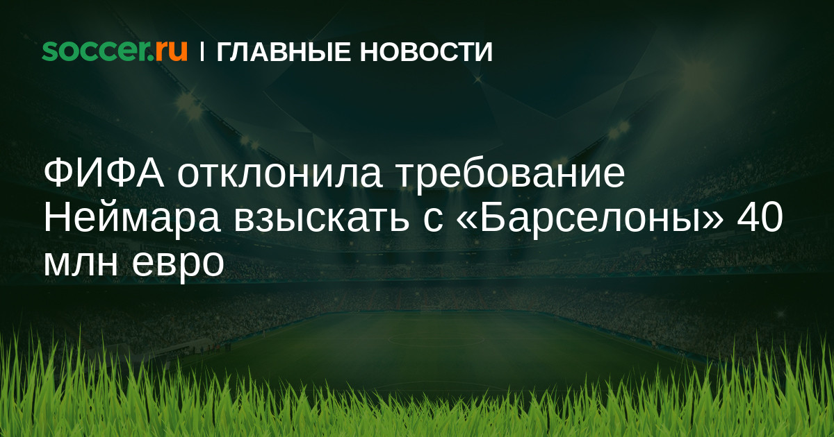 Форварду ПСЖ Неймару не удалось через ФИФА взыскать с «Барселоны» 40 млн евро, которые игрок требовал возместить в качестве компенсации за отказ каталонцев выплатить бонус за продление контракта с клубом в 2016 году.