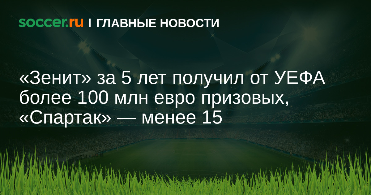 За отчетные пять лет наибольшее число денег от УЕФА получил «Зенит» — 100,8 млн евро. На втором месте ЦСКА — 73,7 млн евро. В то же время доход «Спартака» от призовых составил всего лишь 14,5 млн евро (из них 14,1 — в 2012 году, в 2013 и 2016 — по 0,2 млн евро).