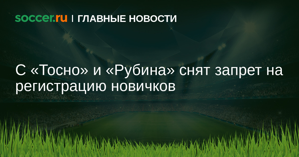 Палата по разрешению споров РФС сняла с «Тосно» и «Рубина» запрет на регистрацию новых футболистов.