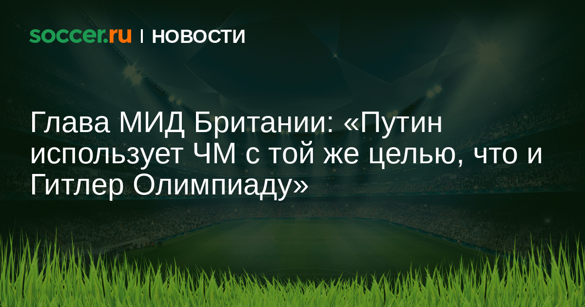 Министр иностранных дел Великобритании Борис Джонсон, ставший одним из инициаторов бойкота чемпионата мира в России, считает, что президент РФ Владимир Путин использует мундиаль ради пиара, как в свое время делал Адольф Гитлер: