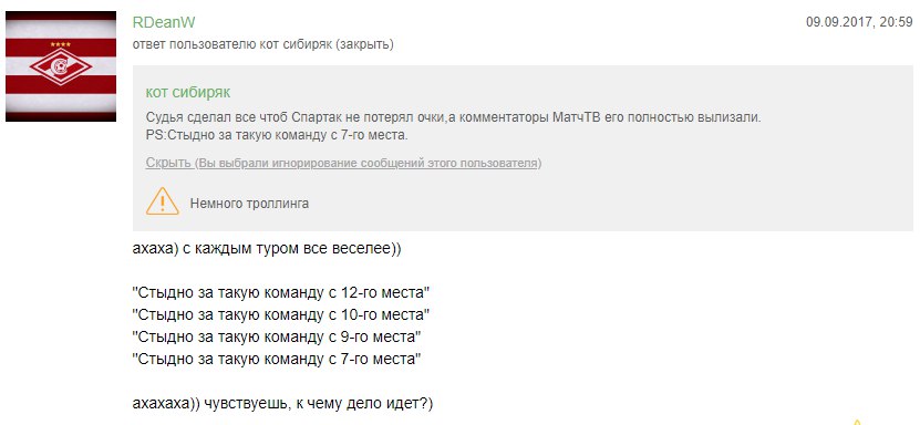 А потом удивляются, за какие это оскорбления штрафуют пищевик) если вы, интернет бойцы себя так ведёте, то представьте как ведут себя фанаты вашего фк имени мутко)