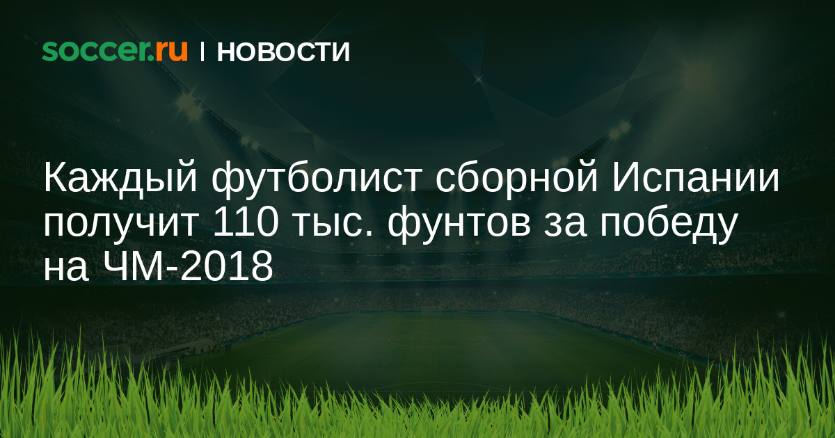 А вот если ЧМ-2018 закончится победой для испанцев, то вознаграждение увеличится до 110 тыс. фунтов.