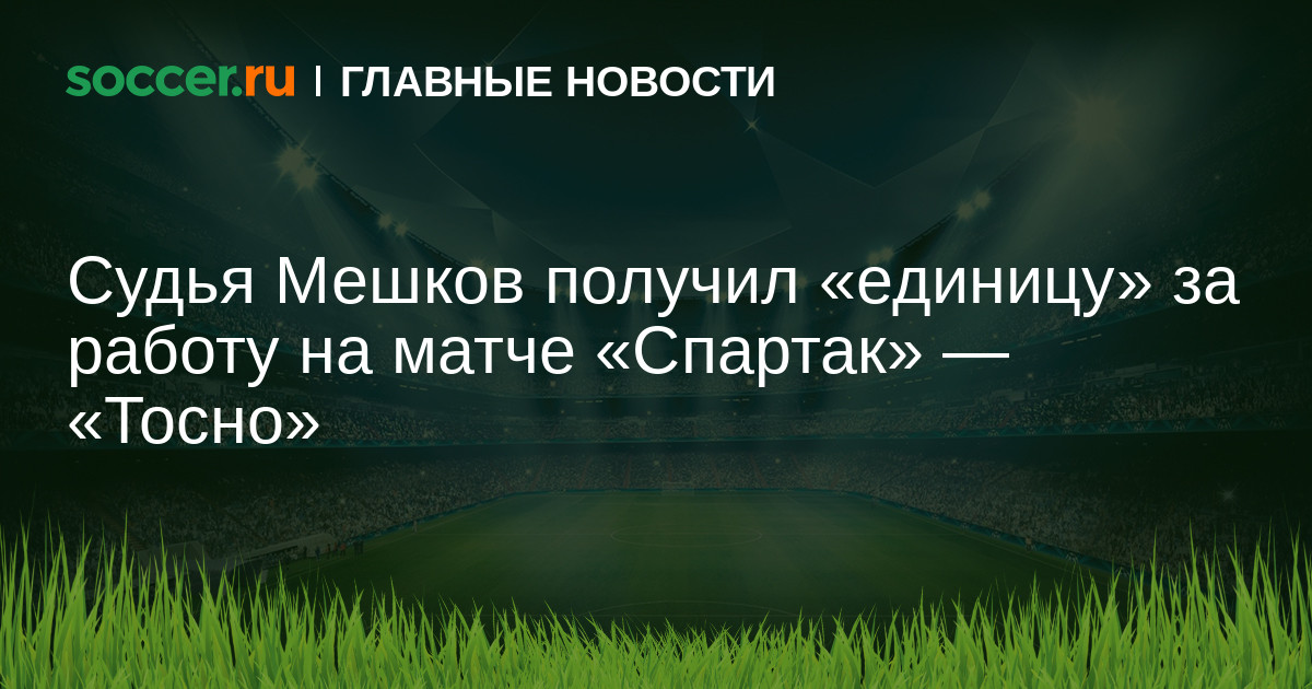 Арбитр Виталий Мешков получил «единицу» за работу на матче 24-го тура РФПЛ «Спартак» — «Тосно» (2:1).