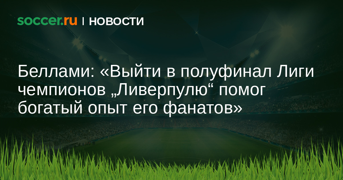 «Ливерпуль» победил «Манчестер Сити» в обеих встречах 1/4 финала Лиги чемпионов (3:0, 2:1). Бывший игрок «Сити» и «Ливерпуля» Крейг Беллами считает, что болельщики «красных» сыграли серьёзную роль в выходе своей команды в полуфинал ЛЧ.
