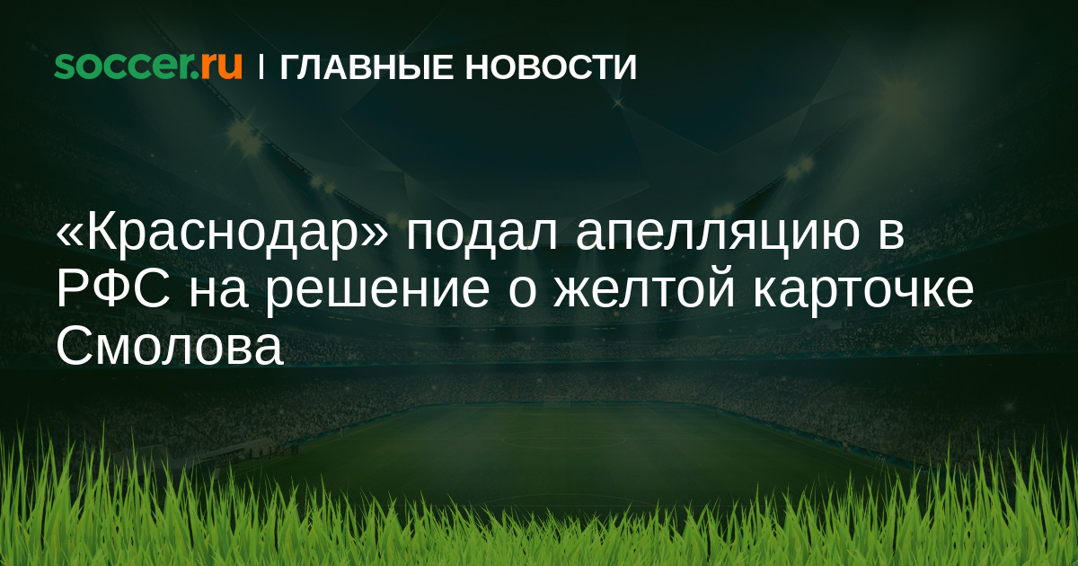 «Клуб уже подал апелляцию в РФС на решение наказать Смолова желтой карточкой», — сообщил генеральный директор клуба Владимир Хашиг.