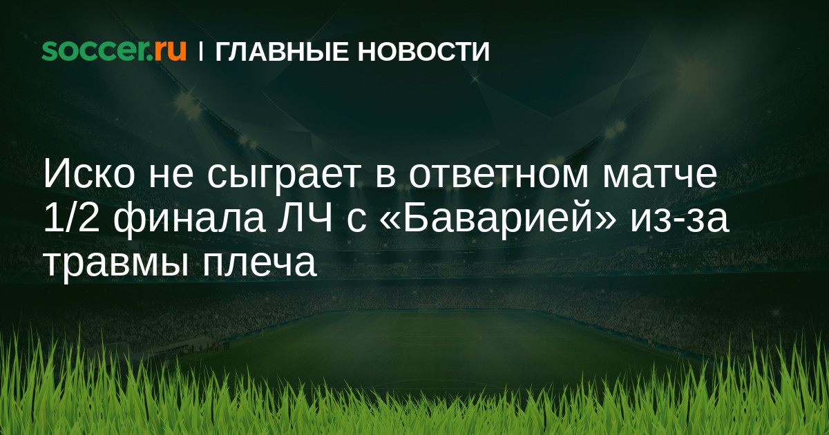 Вслед за известием о травме защитника «Реала» Даниэля Карвахаля, стало известно и о еще одном игроке мадридцев, который с большой долей вероятности пропустит ответный матч 1/2 финала Лиги чемпионов с «Баварией». Иско повредил плечо в первой встрече на «Альянц Арене» и покинул поле сразу после перерыва.