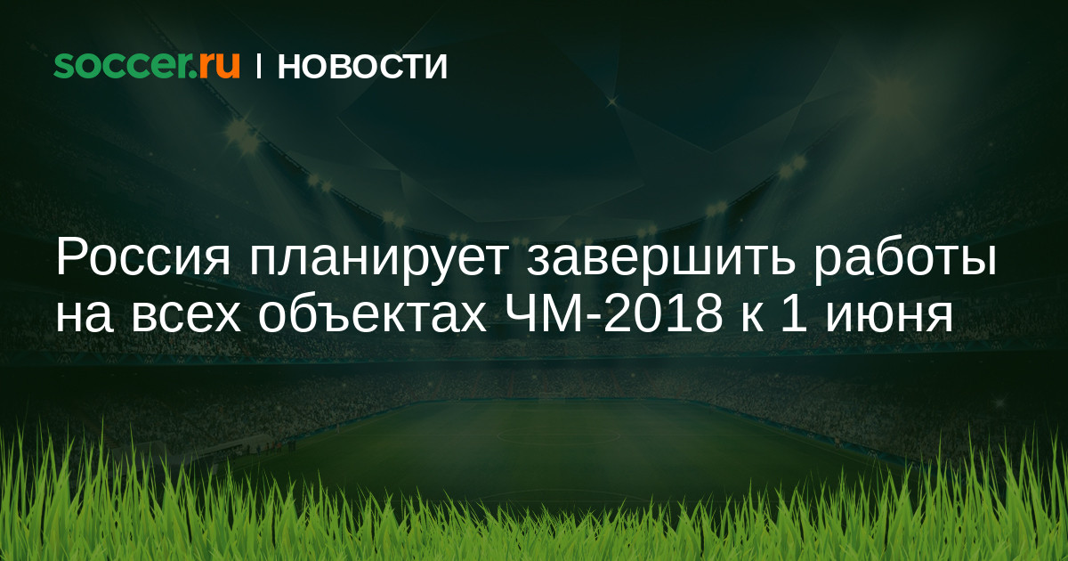 Министр спорта РФ Павел Колобков на заседании наблюдательного совета организационного комитета «Россия-2018» заявил, что Россия планирует завершить работы на всех объектах чемпионата мира по футболу к 1 июня.