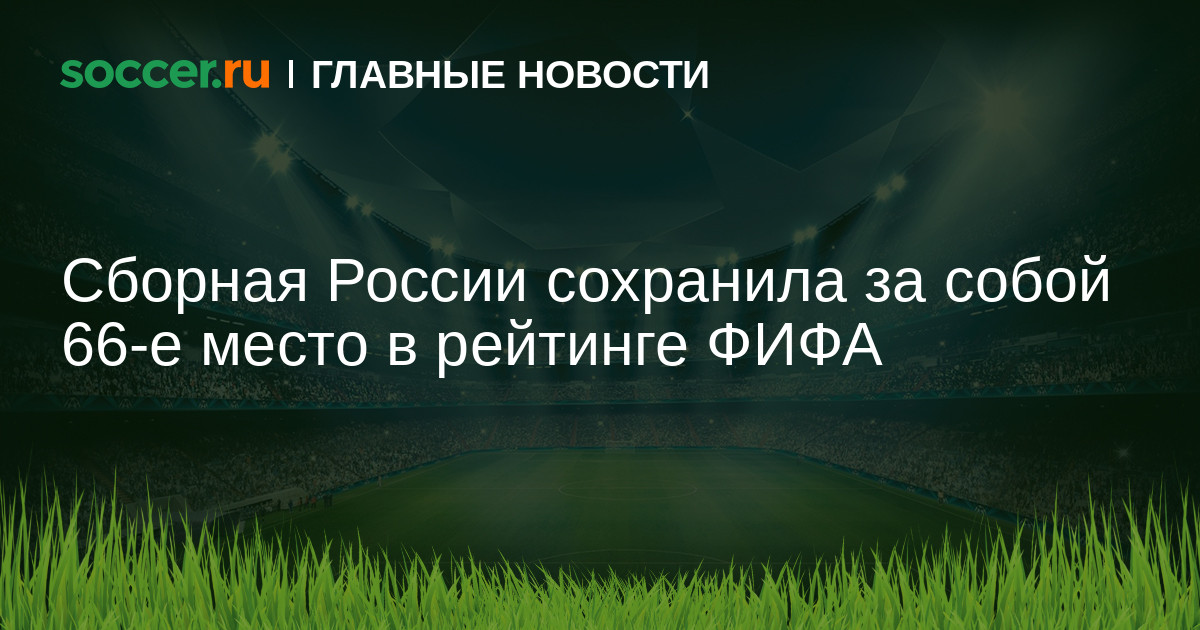 Официальный сайт ФИФА опубликовал обновленный рейтинг сборных. Россия осталась на 66-м месте в рейтинге Международной федерации футбола (ФИФА).