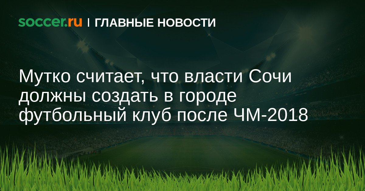 Вице-премьер РФ Виталий Мутко считает, что власти Сочи должны создать в городе футбольный клуб после завершения чемпионата мира в России.