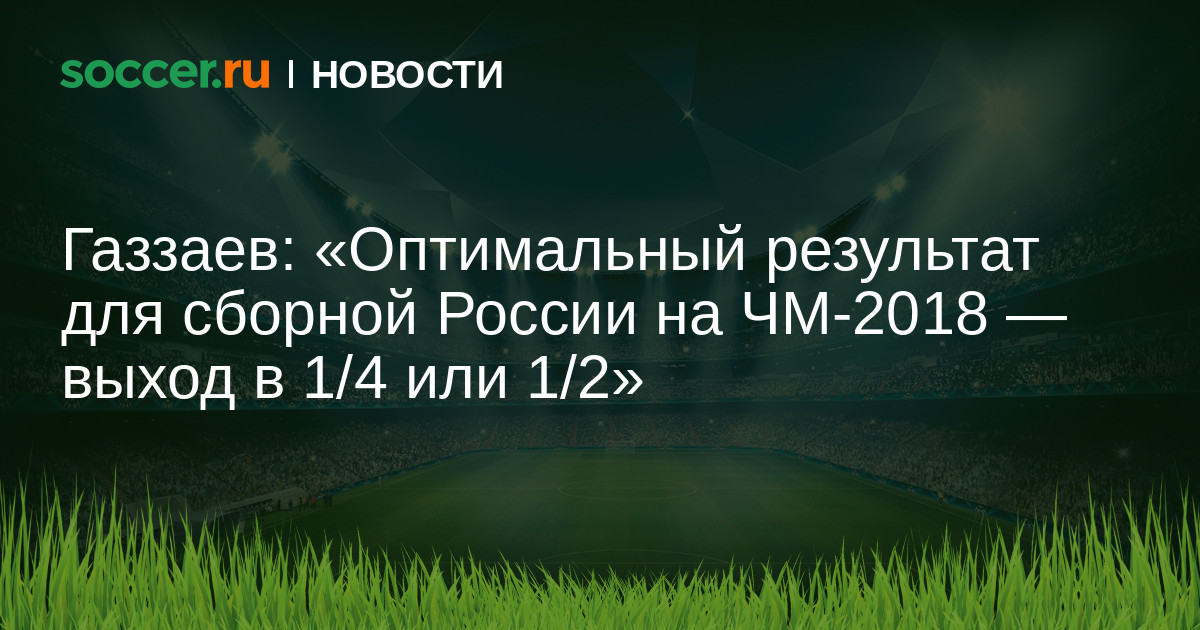 Депутат Государственной думы РФ Валерий Газзаев считает, что оптимальным результатом для сборной России на домашнем чемпионате мира по футболу станет выход в четвертьфинал или полуфинал турнира.