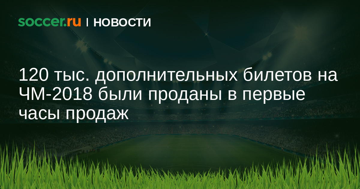 Пресс-служба ФИФА сообщает, что около 120 тыс. дополнительных билетов на матчи чемпионата мира по футболу в России были проданы в первые часы после начала продаж.