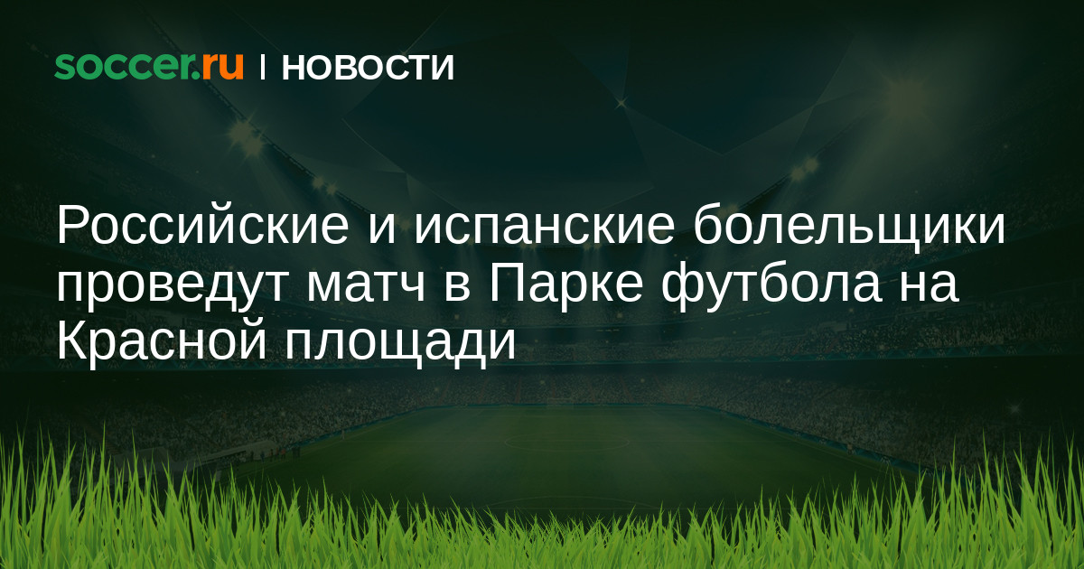 Болельщики сборных России и Испании проведут товарищеский матч в Парке футбола на Красной площади. Встреча состоится 1 июля. Главной целью проведения матча является развитие и укрепление дружеских отношений между Россией и Испанией.