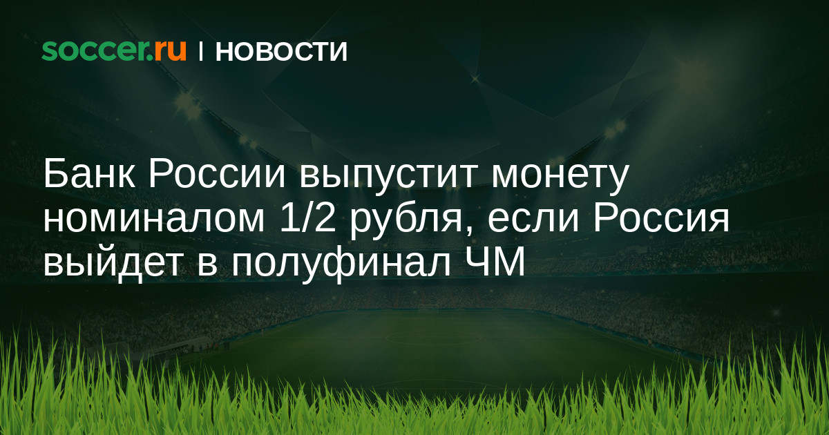 Банк России готов выпустить памятную монету, если сборная России выйдет в полуфинал чемпионата мира. Номинал монеты — 1/2 рубля.