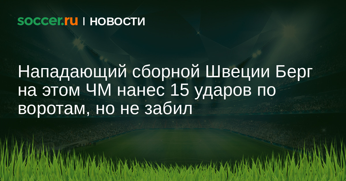 Нападающий сборной Швеции Маркус Берг нанес 15 ударов по воротам соперников на текущем чемпионате мира в России, однако так и не сумел забить ни одного гола. В последний раз подобное случалось 8 лет назад, когда аргентинец Лионель Месси бил 29 раз и тоже не смог поразить ворота соперников.