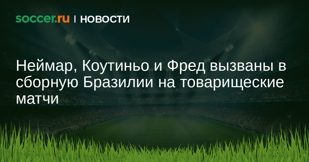 Сборная Бразилии объявила заявку на товарищеские матчи. В состав вошли нападающий ПСЖ Неймар, полузащитник «Барселоны» Филиппе Коутиньо, а также новичок «Манчестер Юнайтед» Фред.
